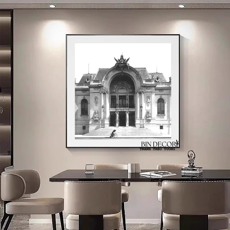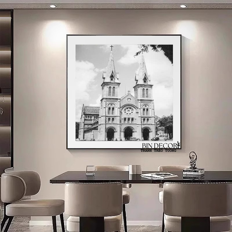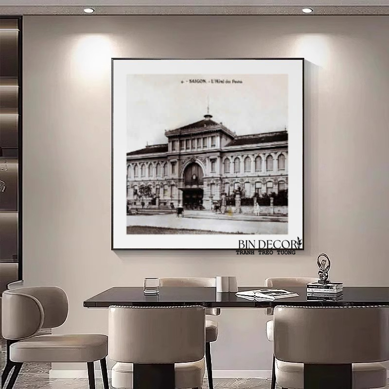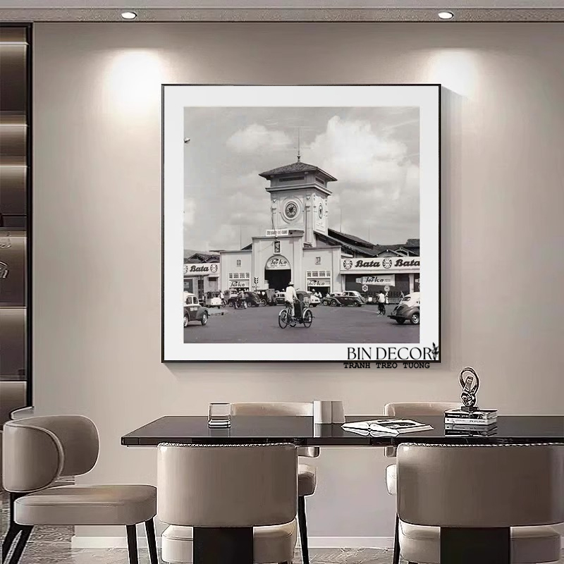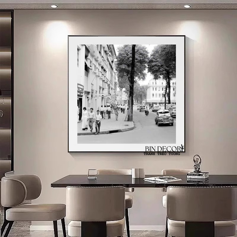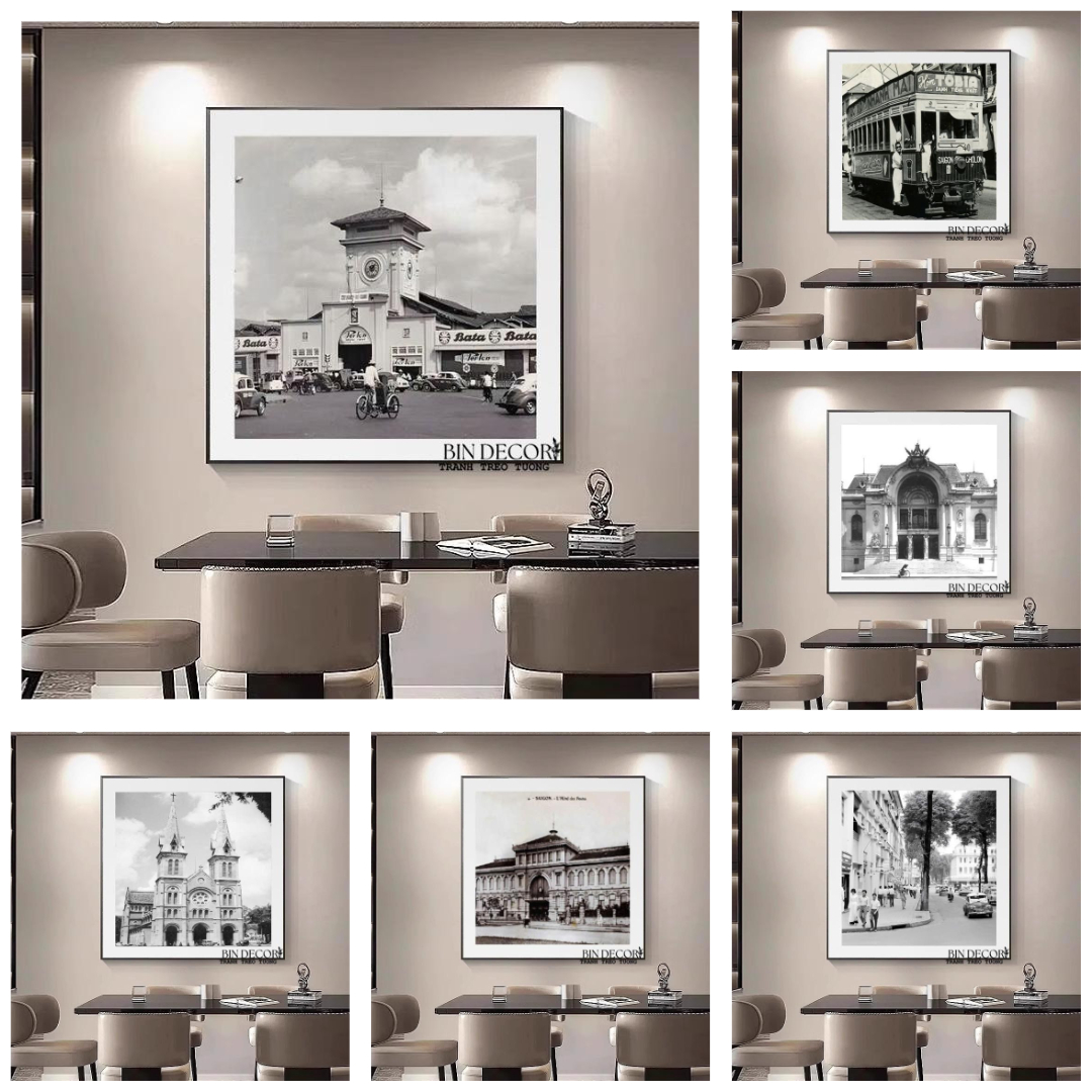 (ẢNH THẬT) Tranh treo tường sài gòn xưa 4 trắng đen có khung kèm đinh treo