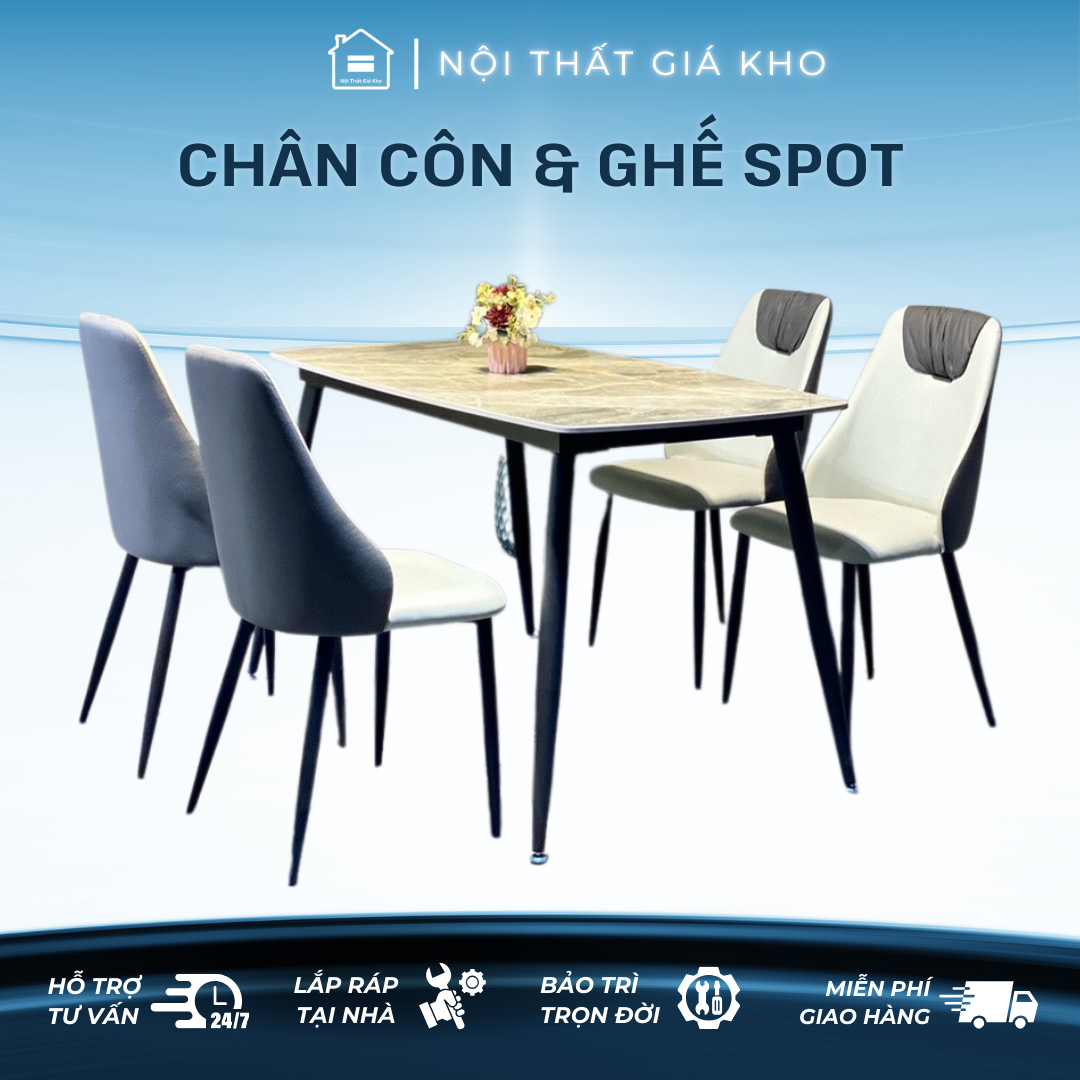 - Ghế ăn bọc da cao cấp ở bề mặt tiếp xúc, chân sắt sơn tĩnh điện