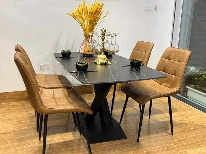 Bàn ăn mặt đá phiến chân chéo, chân sắt sơn đen tĩnh điệnBàn ăn mặt đá phiến với mặt bàn thiết kế hình chữ nhật với 4 cạnh bo viền tròn tỉ mỉ, những gia đình có trẻ nhỏ hiếu động và người già nên sử...