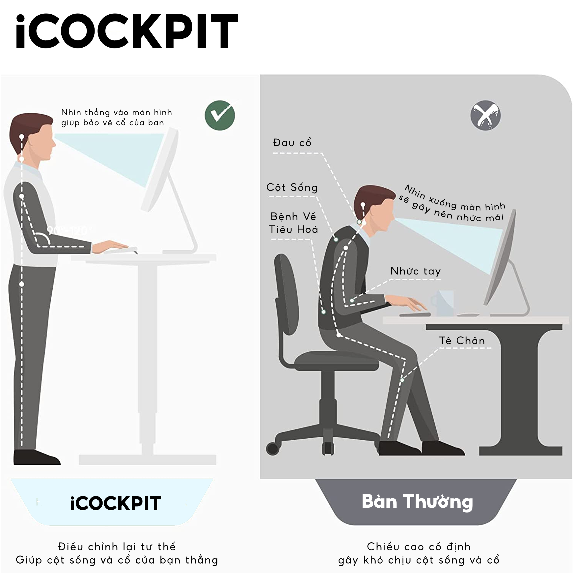 -Chuyển tư thế từ ngồi sang đứng và ngược lại thông qua 1 nút bấm. Chỉ tốn 10 giây đổi vị trí đứng ngồi là ngay lập tức tình trạng mỏi cơ, căng thẳng sẽ không còn nữa. Mang lại sự sảng khoải tức thì sau nhiều giờ làm việc căng thẳng
