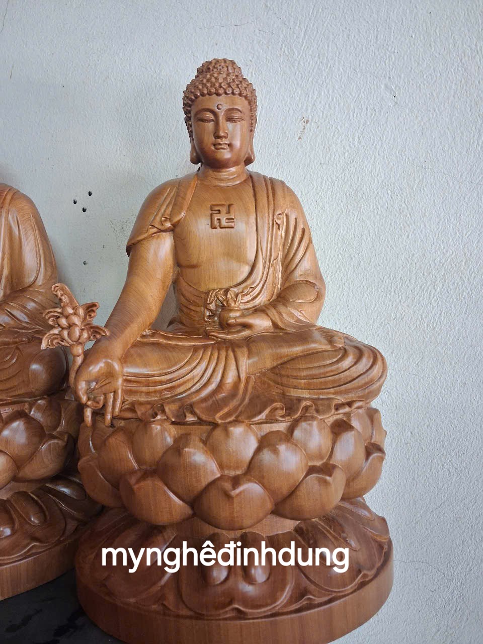 _ Bộ tượng tam thế phật được làm bằng chất liệu gỗ bách xanh liền khối tự nhiên 100%