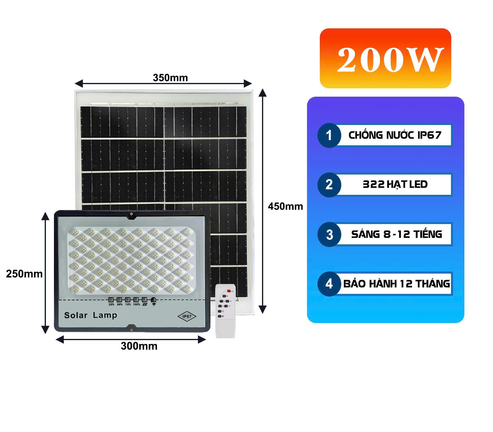 ▪️ Kích thước đèn: 300*250*80mm