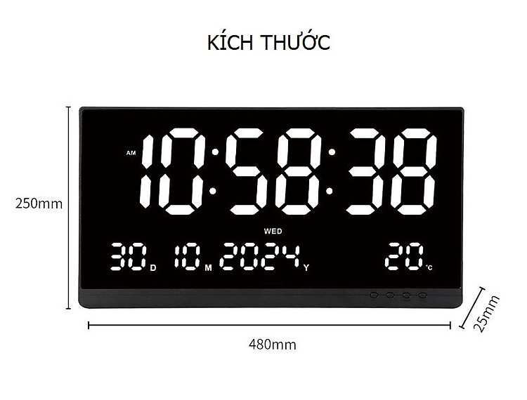 Đồng hồ LED màn hình lớn 48x25x2,5cm