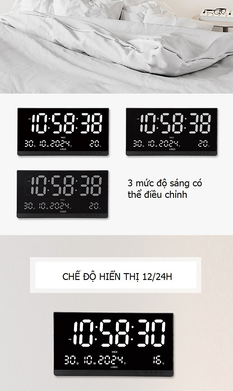 1. Đồng hồ treo tường hiển thị số rất to( Lưu ý số hiển thị là mặc định, không tùy chỉnh màu được)