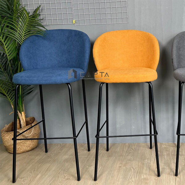 Ghế quầy bar nệm vải chân sắt CB COCO-F Nội thất Capta Ghế bar nệm vải bố màu xanh dương đậm không tay chân sắt sơn tĩnh điện màu đen cố định