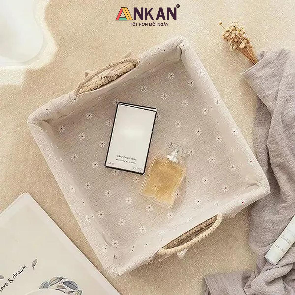 Giỏ Decor Hình Vuông Có Quai Xách – Đan Tay Thủ Công, Lót Vải Hoa Vintage, Trang Trí & Đựng Đồ Đa Năng