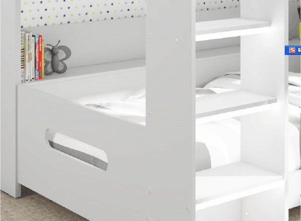 + Cầu thang chắc chắn với các bậc thang có kích thước tương đối lớn, đảm bảo an toàn cho bé khi di chuyển. Giường tầng trẻ em cao cấp là một sản phẩm thiết thực cho các gia đình có con nhỏ và người lớn cũng có thể sử dụng. Cùng với ưu điểm tiết kiệm không gian.