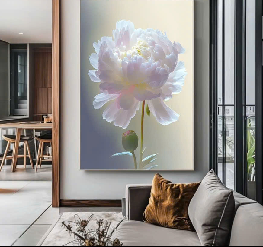 Giới thiệu Tên sản phẩm (HCM) Tranh hoa mẫu đơn 1, tranh tráng gương hoa mẫu đơn trang trí phòng khách,phòng ngủ kèm đinh treo