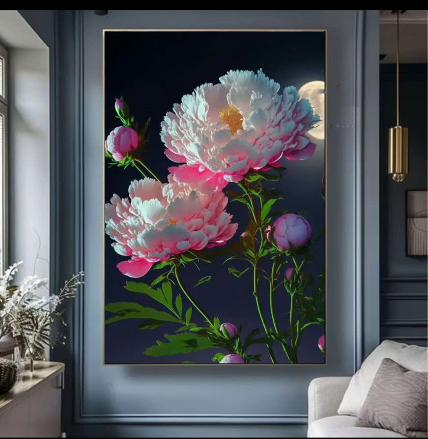 Tên sản phẩm (HCM) Tranh hoa mẫu đơn 1, tranh tráng gương hoa mẫu đơn trang trí phòng khách,phòng ngủ kèm đinh treo