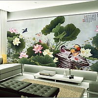 Tranh dán tường 3d đầm sen - ép kim sa