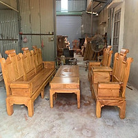 Bộ bàn ghế trạm nghê đỉnh tay khuỳnh vách chữ C gỗ cẩm vàng