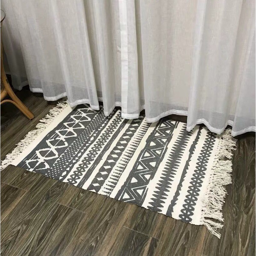 Thảm vintage tua rua, thảm lót chân giường, thảm chùi chân