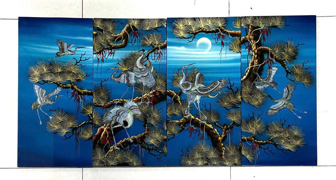 Giới thiệu Bộ Tranh sơn mài 4 tấm- TÙNG HẠC DIÊN NIÊN - Khảm cừ size 60x120 cm / hàng cao cấp , xuất khẩu