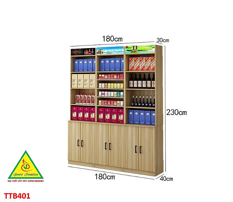 Kích thước : Cao 230 ngang 150/180/210/240cm sâu 40cm