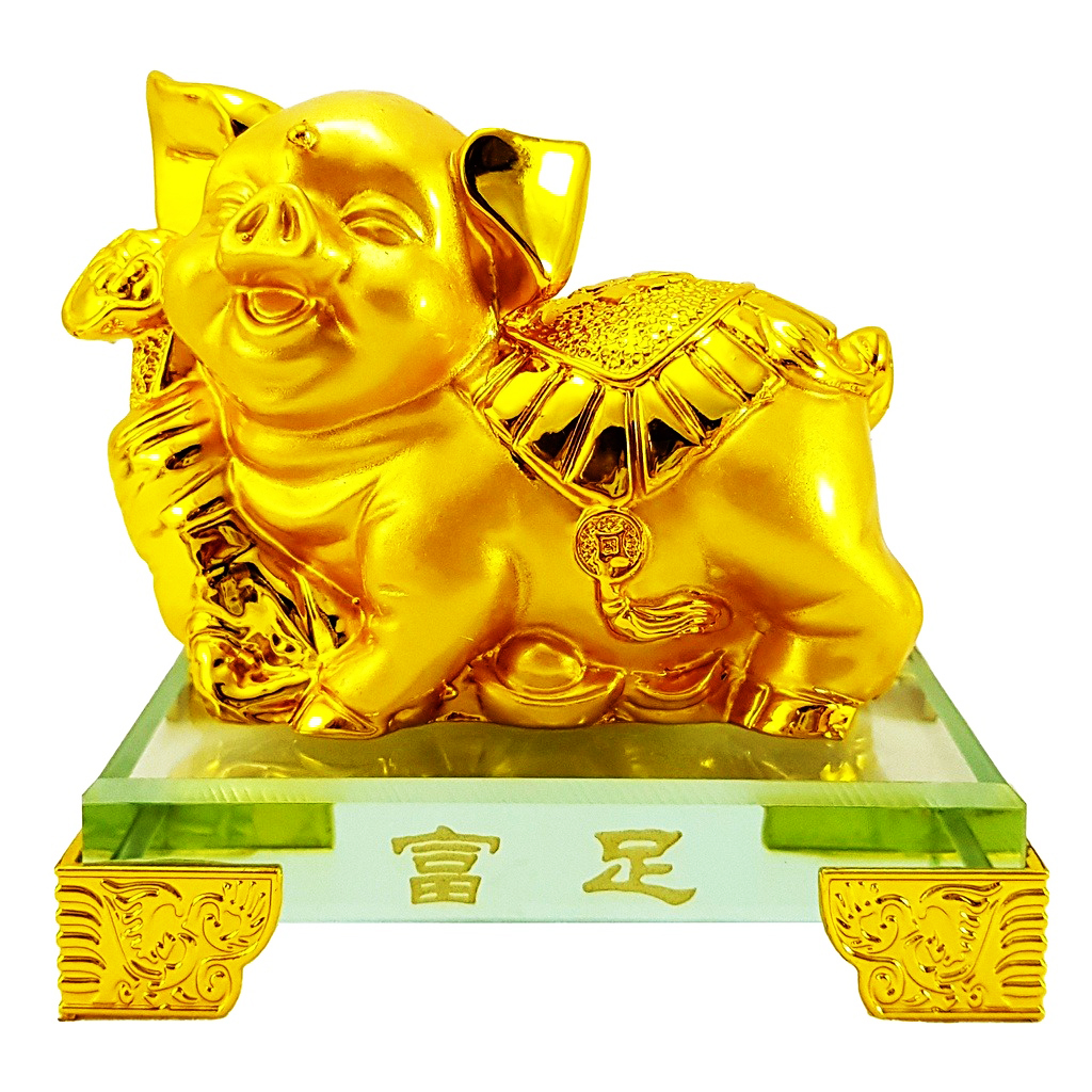 Tượng chú heo vàng đế kính thủy tinh cao cấp