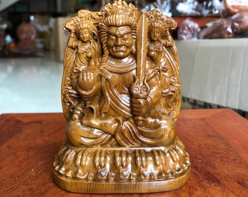 Giới thiệu Tượng phật bản mệnh ,tượng phật bất động minh vương ( Tuổi ngọ ) bằng gỗ bách xanh thơm phức kt cao 12×9×6cm