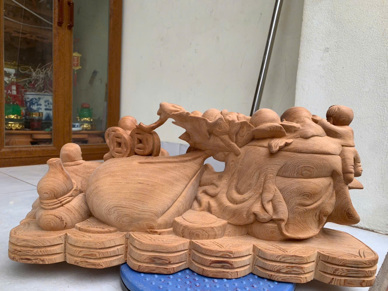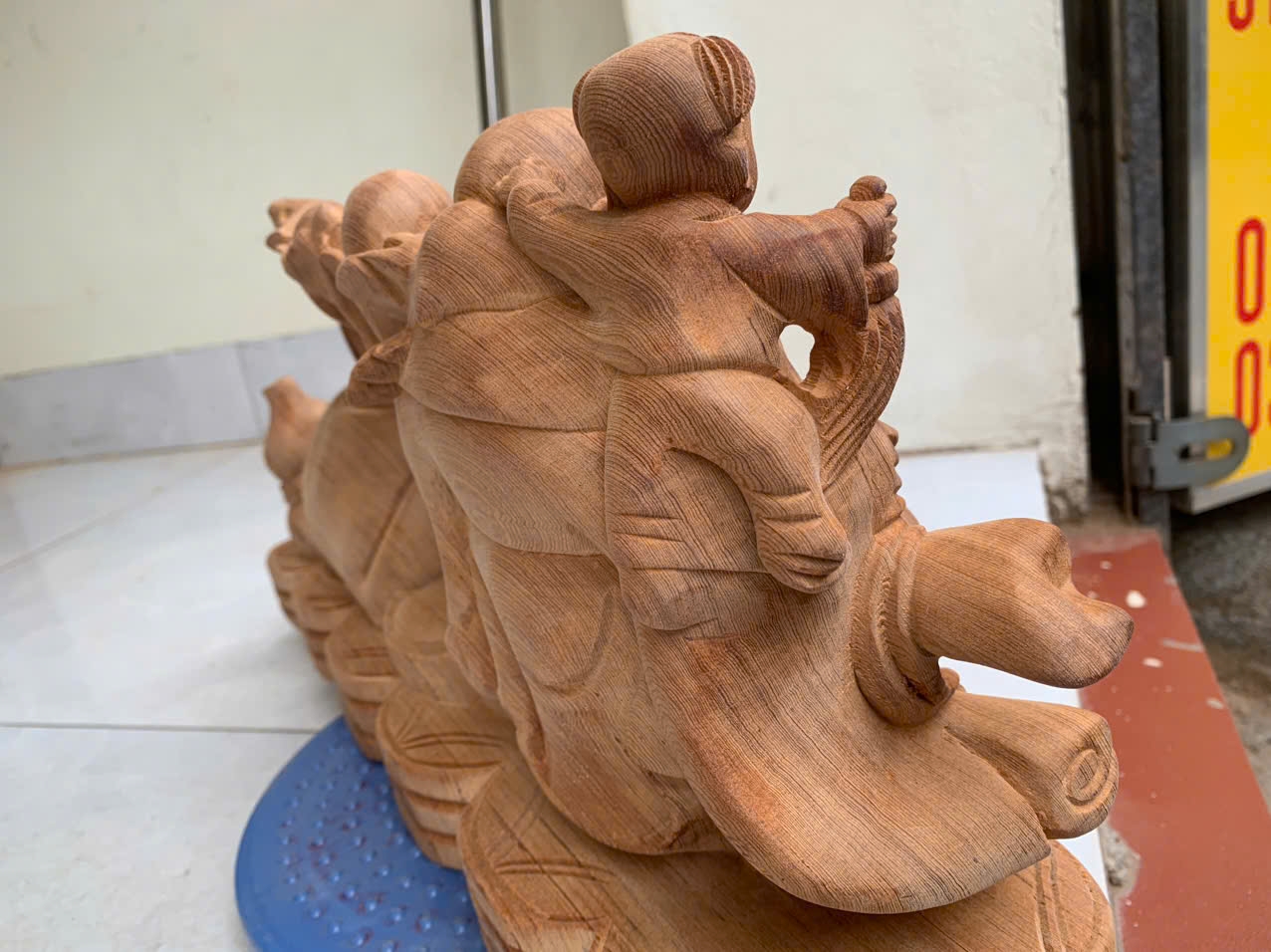_ Tượng được chạm khắc gọt tỉa vô cùng tỉ mỉ tỉnh xảo kỳ công. ĐI HẦU tất cả mọi chi tiết góc ngách nội dung hoa văn của Tượng đều được gọt tỉa chỉnh sửa sắc nét hoàn toàn bằng tay thủ công truyền thống truyền tháng...