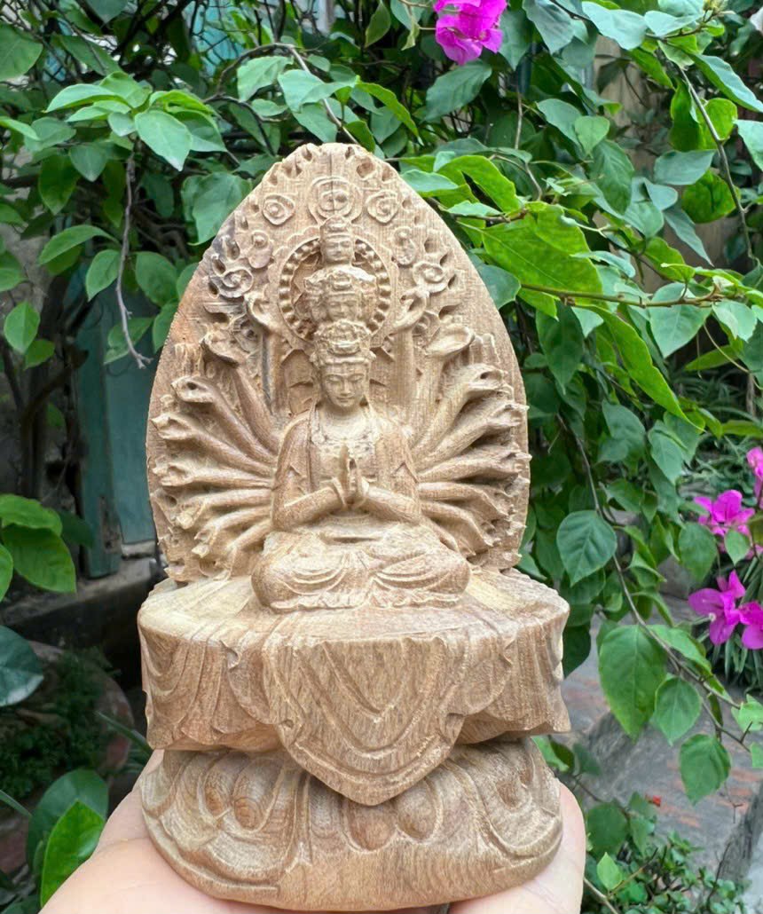 _ Tượng phật thiên thủ thiên nhãn được làm bằng chất liệu gỗ bách xanh liền khối tự nhiên 100%